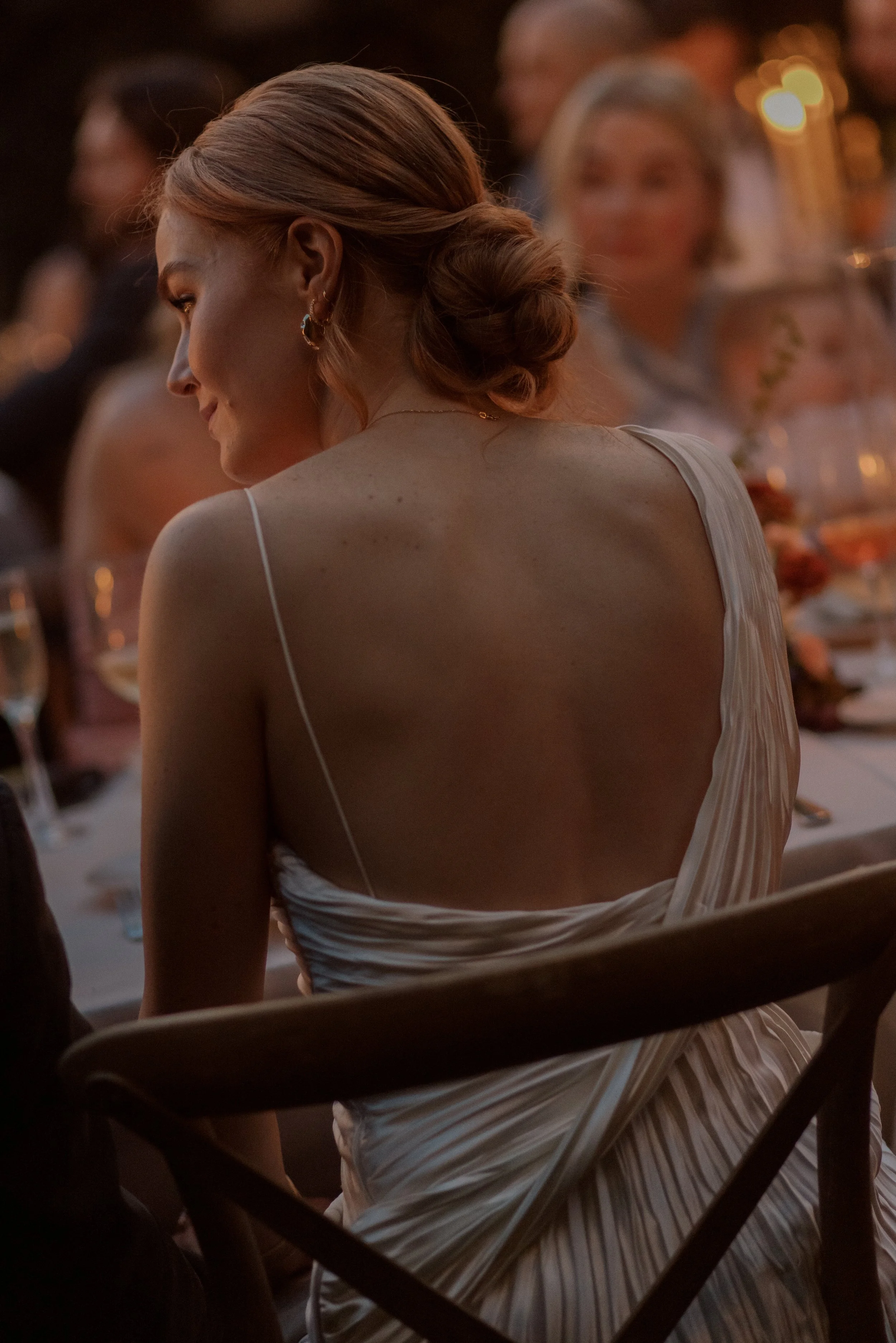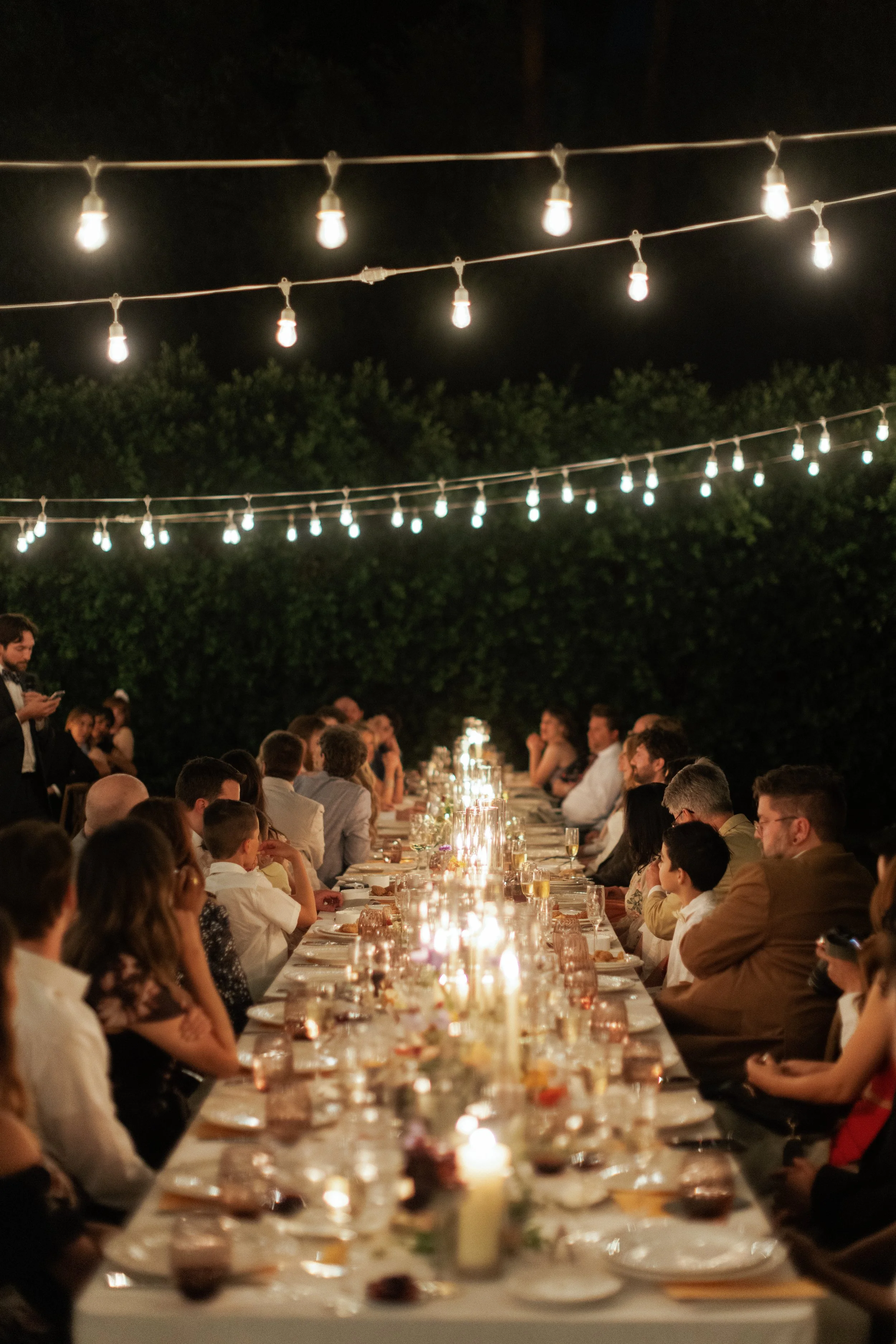 The reception followed suit: a long-table Italian dinner party brought to life with candlelight, garden textures, and thoughtful details that encouraged connection and conversation. Formal attire met a relaxed atmosphere: elevated but never stuffy. The result was a wedding that felt classic, yet full of personality, warmth, and soul.